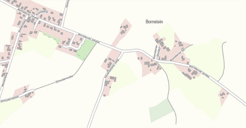 Diese als „Rundling “ zu bezeichnende Dorfanlage um die Schule und das ihr gegenüberliegende Ehrenmal herum mit stattlichen Bauernhäusern und ihren Hauskoppeln, die einen historisch bedingten Abstand zwischen den Gebäuden schaffen, ist sehr gut zu erkennen. Die landwirtschaftliche Nutzung ist überall in eine reine Wohnnutzung übergegangen.